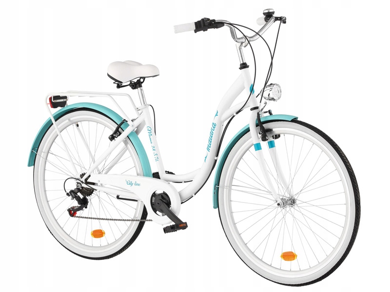 Rower miejski INDIANA Moena S7B 28 cali damski Biało-lazurowy 2023